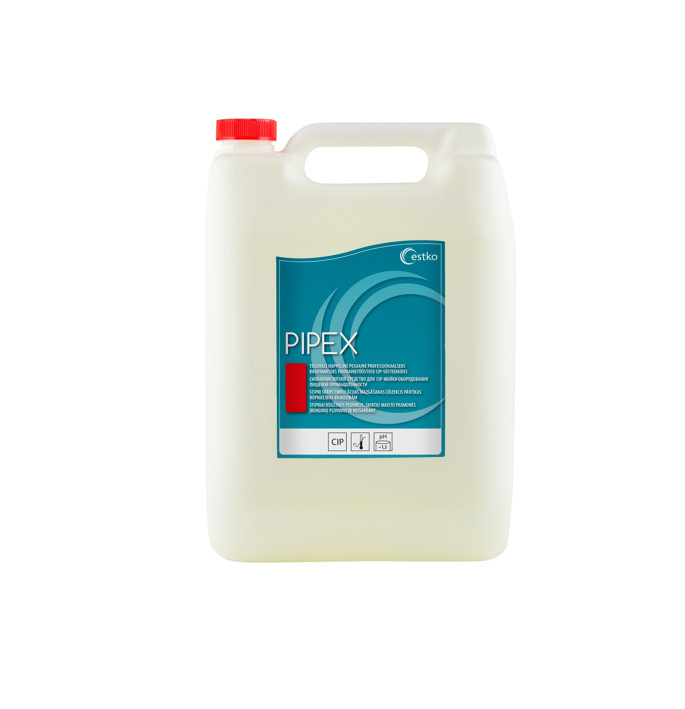 INSTUCTIONS FOR USAGE: Pre-rinse or flush thoroughly the system with cool water. Circulate with Pipex 0,3-1,5% solution throughout the circuit for 10 to 15 minutes. Washing temperature should not be over 80°C. Circulate a rinsing water. Used solution can be collected to containers and reused after concentration. The concentration of cleaning solution and period of time needed depend on the frequency of cleaning and on the contamination of the surface.